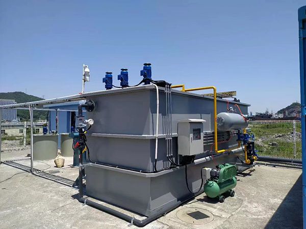 廢水由污水泵從調節(jié)池抽向氣浮池。這樣可使藥液和污水通過污水泵的葉輪旋轉而得到充分的混合。藥液由自動加藥裝置供給。加過藥的污水進入氣浮池中,污水得到充分的聚凝。